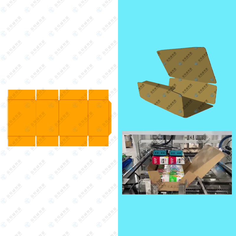 ◆ 裹包机具备自动取料成型,自动理料,目自动装物料,喷胶自动上盖等功能