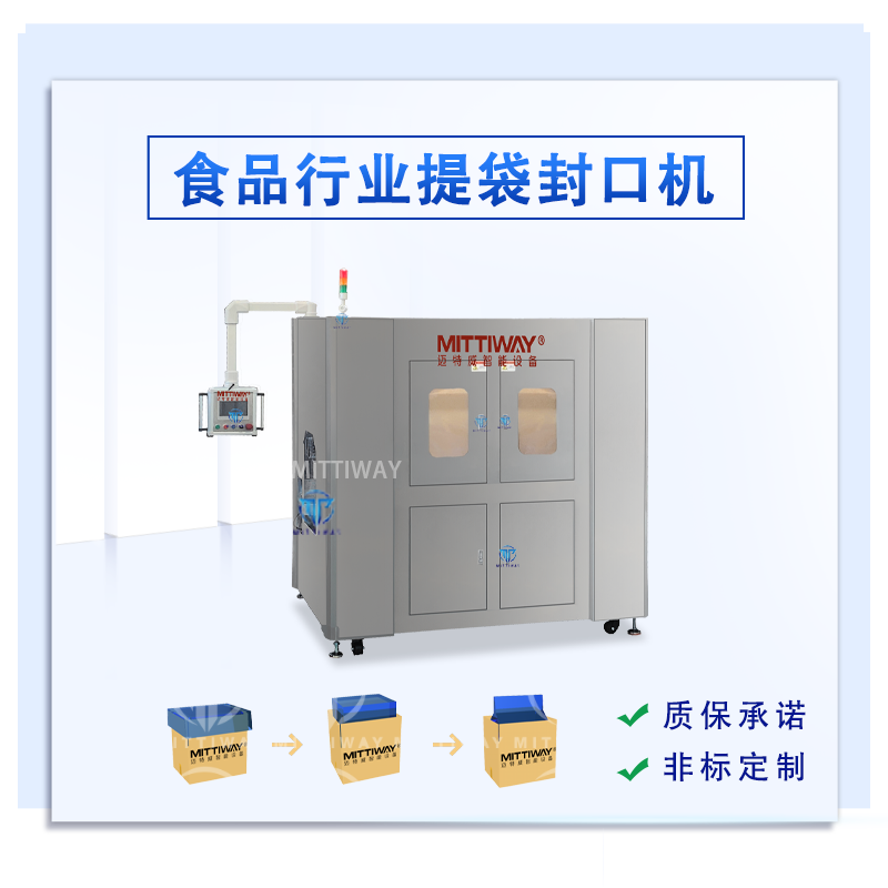 食品行业食品箱套袋封口机 MTW-T50S是一款针对食品行业特殊包装定制的一款全提袋封口机,该机型根据产品的特性采用特殊性采用特殊材料工艺加工,可有效的避免因封刀长时间工作而引起的封口不牢固。整机采用304不锈钢材质加工工艺,可有效的保存设备的清洁、避免产品污染,且外形美观、经久耐用。